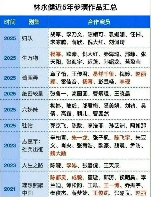 既然林永健提出来了肯定是有事实。 那么,这个“顶流”到底是谁呢? 有人根据林永健最近5年的作品,列举出了一些符合“顶流规格”的演员。 其中杨幂、易烊千玺、赵丽颖、李现、朱一龙、陈飞宇、王一博、王俊凯等等顶流赫然在列。