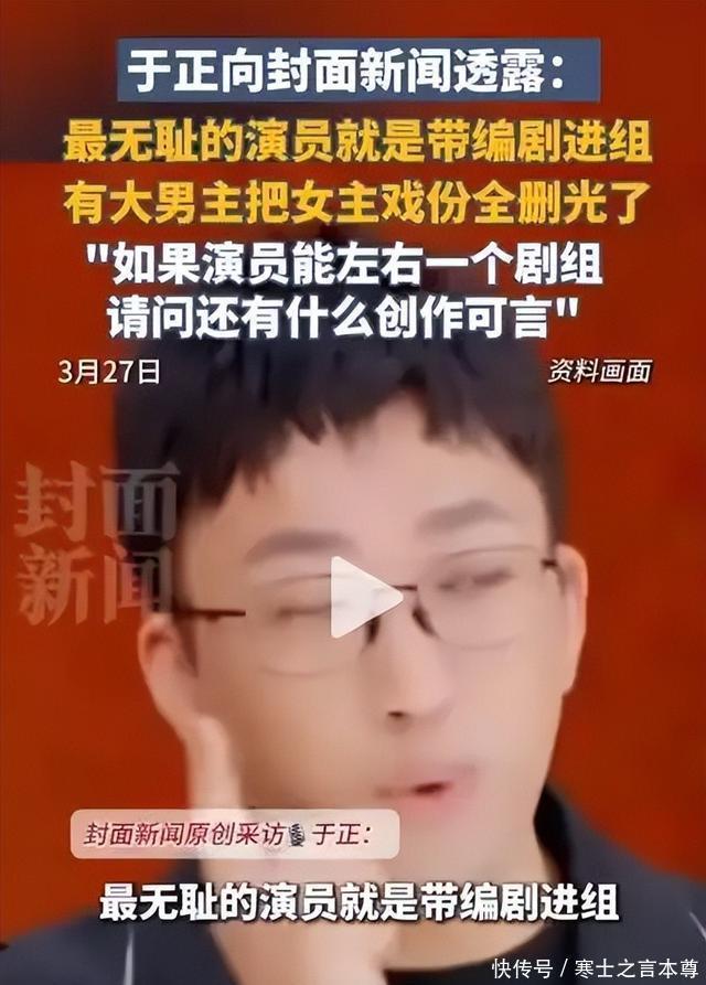 当然,本文也不会猜测林永健说的到底是谁,毕竟也没啥意思,人家不点名就是想给后生一个机会。 但“演员改剧本”这件事真实存在吗? 当然。 爱爆料的于正就曾经说过一个事,有一部剧还没开拍时两个主演就开始争抢番位,等到开机后,该剧的男主角直接带了一个编剧进组拍摄,在拍摄过程中甚至把女主戏份全删光了。 这样的剧,最后能好看吗?