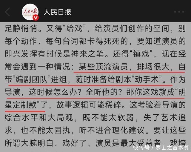 文章名叫《精品是怎样炼成的》,林永健针对自己对目前影视剧乱象,发表了一些自己的看法。 然而文中的一段话,却引起了巨大的关注和争议—— “某些顶流演员,排场很大,自带“编剧团队”进组,随时准备给剧本“动手术”,那你这戏就成“明星”定制款了。”